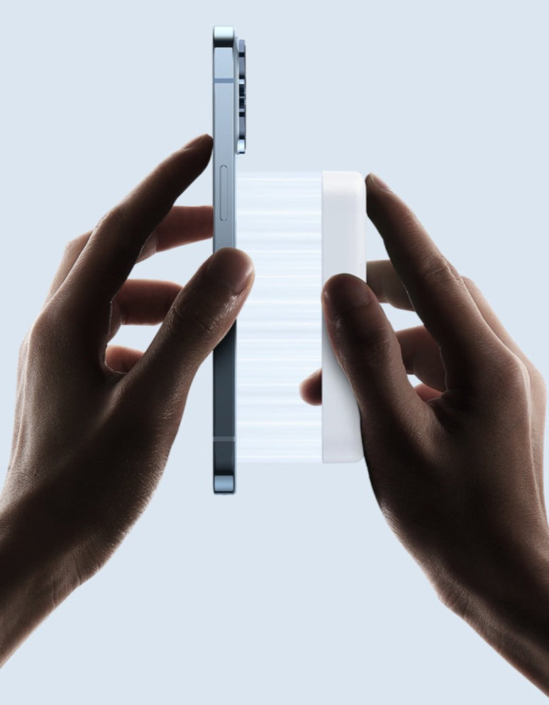 Encaixar a bateria PowerSafe é muito simples. Com seu design compacto e intuitivo, é fácil recarregar em qualquer lugar. Os ímãs são alinhados perfeitamente para aderir com segurança ao iPhone e garantir uma recarga contínua. Nem é preciso ligar e desligar, porque a recarga é automática.